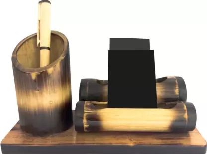 Bamboo pen and card holder to unclog your desk. Best pen and card holder for reception, meeting rooms, customer launches, etc.